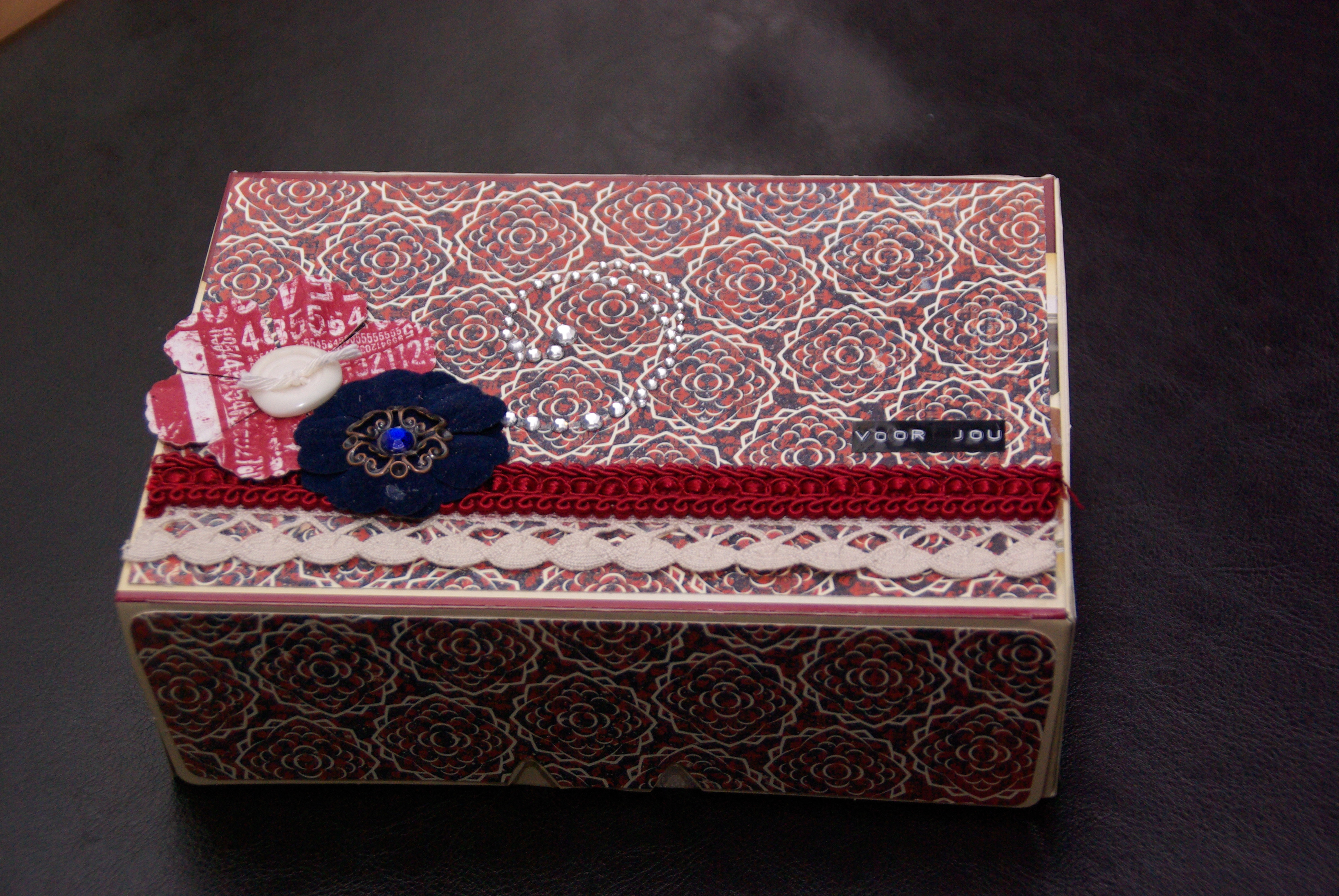 Soms maak ik ook dingen in opdracht, in dit geval moest het een gepimpte doos bonbons worden met bijpassend kaartje. Ook is er een cupcake besteld, zit inmiddels netjes in een cupcake doosje….