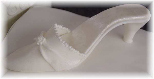 Ik wilde graag een schoenendoos maken, en natuurlijk met een schoentje erbij. Dus een template opgezocht en aan de slag gegaan. Eerst compleet mislukt, omdat de hak niet wilde blijven staan, die zakte in. Dus alles weer in elkaar gedraaid en eerst de hak gemaakt en laten drogen. Toen ie stevig genoeg was, de rest erbij gemaakt, het paste en het werkte, joehoe! Lekker veel roosjes gedraaid, wat “parels” en toen alles bekleden en versieren, gaat toch nog aardig wat tijd in zitten zo.