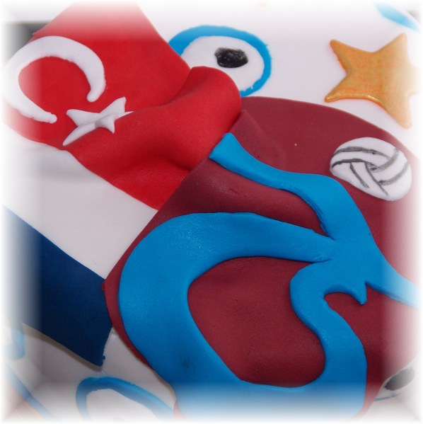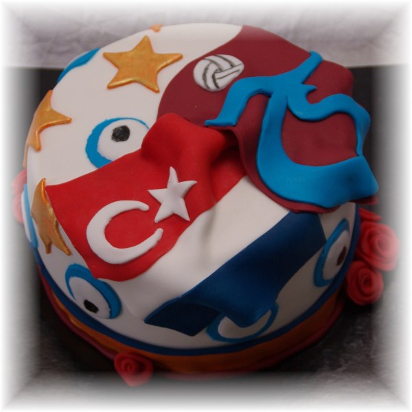 En een sportieve taart voor een vereniging, gevuld met dulce de leche bavarois: