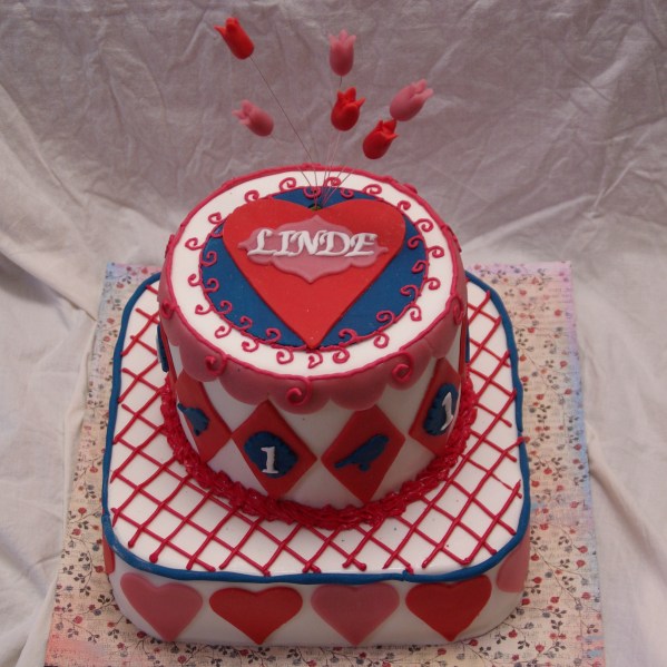 Onze beste vriend werd 50 (ja…ik weet het….we worden ouhoud!!!) en voor hem heb ik twee “naughty” taarten gemaakt. En toen de allerlaatste bestelling voor de vakantie, zware klus, maar een heel tevreden moeder. Het enige is, dat die taart de vriezer inging, dus het is even afwachten of het dat allemaal goedkomt. Ik heb er vertrouwen in….