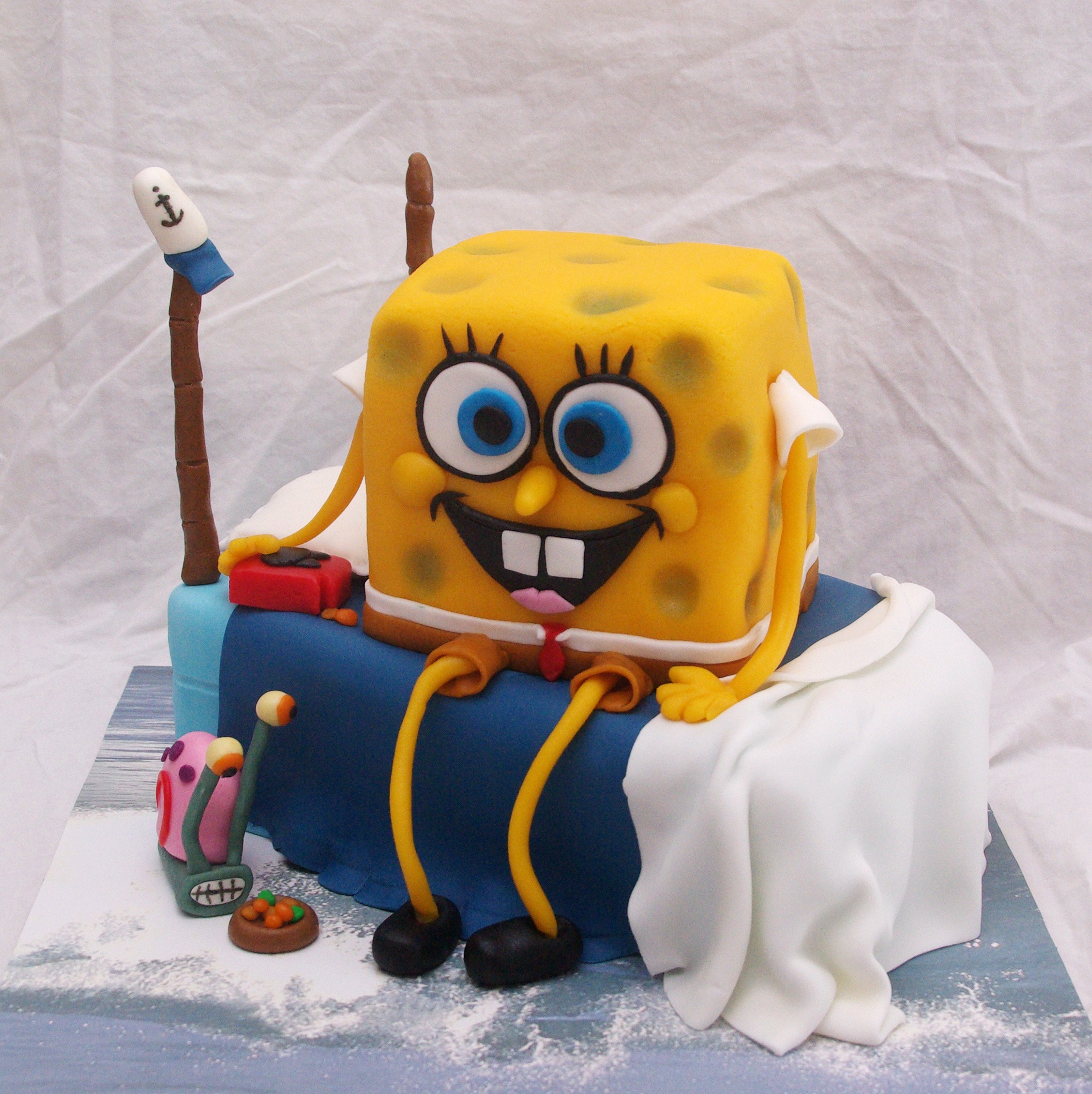 Oooh wat blijft het leuk om een Spongebob taart te maken. Ik word er gewoon helemaal vrolijk van! Dit keer weer wat anders, Spongebob op zijn bedje, die voordat ie gaat werken even zijn lieve Gerrit wat te eten geeft, hahaha…..