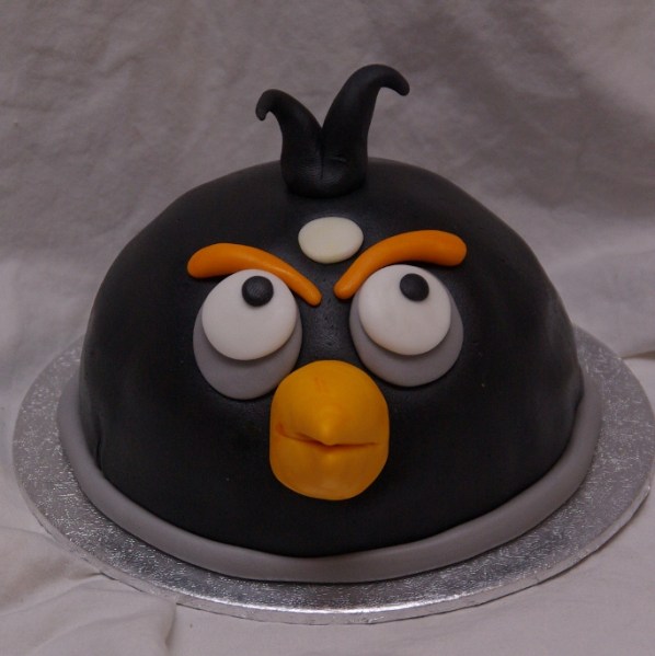 Om te bewijzen dat een noten- EN lactosevrij taartje helemaal niet vies of saai hoeft te zijn, even de foto van het Angry Birds meppertje (die zwarte), werd zeer op prijs gesteld en de stoere kleine knul die normaal nooit taart mee mag eten had dus nu een hele taart voor zichzelf!