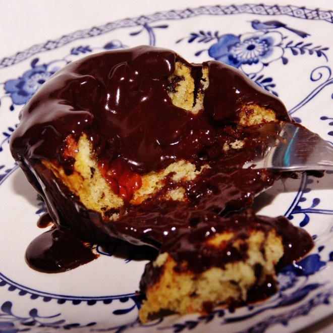 Voordeel van “vrij” zijn is dat je tijd hebt voor experimenten! Zoals deze chocolate chip cupcakes met een zelfgemaakte pruimen/honing/metaxa jam en overgoten met een donkere laag ganache…. Ik denk dat we deze erin houden!!!!!!