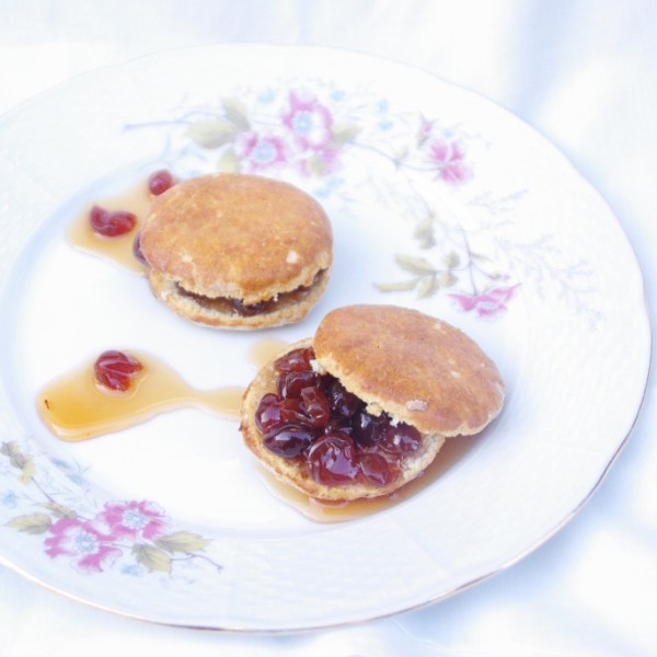 Tis geen scone, tis geen whoopie, tis geen cakeje…. tja wat is het dan wel? Geen idee, ik heb hem wel doormidden gesneden en gevuld met een heerlijke zoete druivengelei…. gewoon, omdat het lekker is!