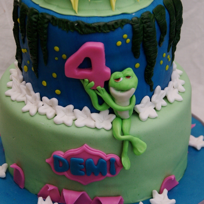 Het is een mooie film, Prinses en de kikker en ik mocht er eerder nog geen taart van maken. Maar nu eindelijk wel een keer, erg leuk om te doen, heb me vooral laten inspireren door het moeras en het spaanse mos met de vuurvliegjes… ik ben gewoon lekker los gegaan op de prinses, erg leuk om te doen ook weer! Deze taart is gevuld met een lekker jammetje en een meringuecreme met verse vanille, ik vind het altijd zo mooi als je de zwarte stipjes van de vanille ziet in die witte creme, het oog wil ook wat toch?