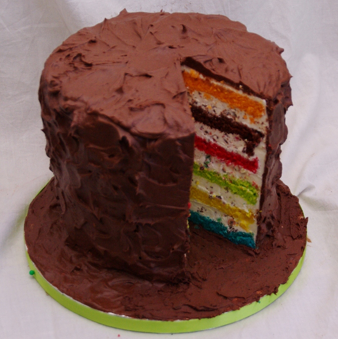 Wat zijn ze leuk he, die eigenwijze Red en Yellow M&M’s…. nu eens niet “in the bowl” maar lekker in en op een taart. Om het effect te vergroten is deze taart in de M&M’s kleurtjes gebakken. De vulling is een meringuecreme met stukjes M&M’s dus je kunt wel zeggen dat dit taartje zeer geschikt was voor een echte liefhebber….. en wie zijn er grote liefhebbers van M&M’s? Scrappers natuurlijk!!!!!! Deze taart was dan ook voor scrapvriendin Cynthia, lekker veel M&M’s om met het gezin lekker van te genieten….