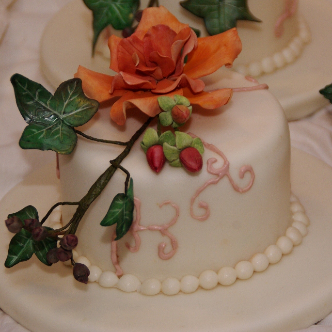 Het bruidspaar “heeft iets” met beestjes en daarom moesten er ook nog beestjes enigszins subtiel maar wel zichtbaar verwerkt worden op de taart. Ik heb gekozen uit een hele serie foto’s die ik doorgestuurd kreeg voor een kevertje en een rupsje….