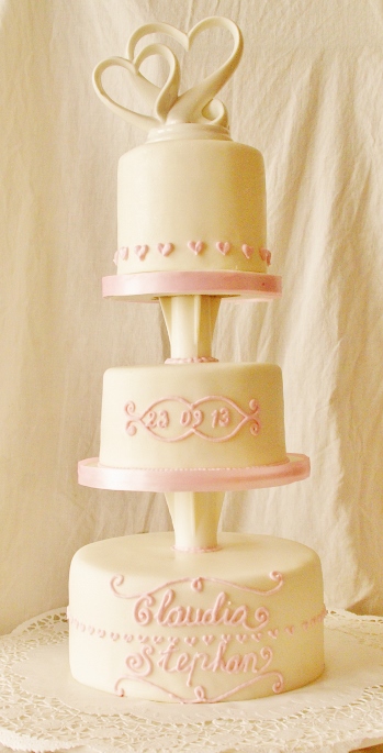 Twee bruidsparen kozen voor een vanille/kardemomcake, lekker stevig, geurig en zoet. Een ander bruidspaar koos voor een vanillecake, ook lekker stevig, het vierde bruidspaar koos een wat luchtigere “angelfood” cake, een cake met alleen maar eiwitten, waardoor die ook van kleur mooi licht is.