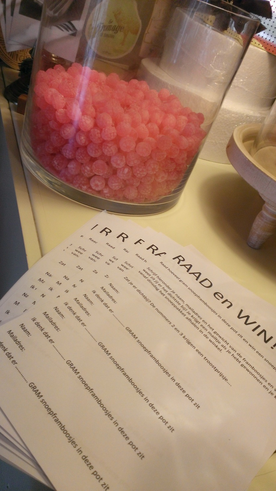 Wij hebben allerlei leuke dingen staan, van mini applepies tot slices triple chocolate cake en van oudhollands snoep tot chocolate salty balls… Maar ook aanbiedingen van bakmixen en ingrediënten om zelf aan de slag te gaan. We hebben de stembus voor de fotowedstrijd geopend en er is nog een Raad en Win actie waarbij je moet raden hoeveel gram snoep er in de pot zit….