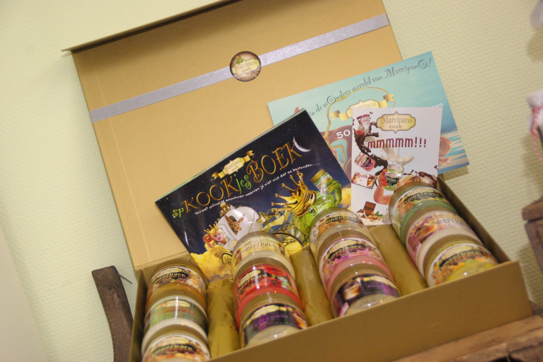 Sinds kort hebben wij alle smaken Marcipano smeerbare marsepein in het assortiment opgenomen. Overheerlijke combinaties waar je erg leuk mee kunt variëren. Je kunt het natuurlijk gewoon lekker op je boterham smeren, maar in de bijbehorende flyer zie je een aantal lekkere toepassingen. Wil je er echt meer werk van maken, dan is er zelfs een compleet kookboekje. Dit boekje krijg je ook nog eens gratis bij aankoop van drie potten Marcipano.