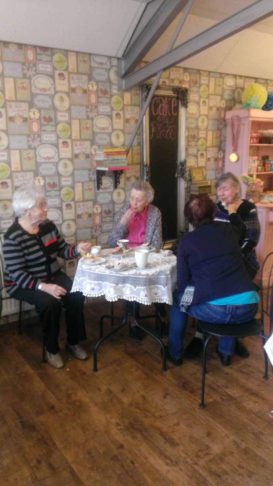Gisteren hadden we echt zo’n gezellige ochtend! Er kwamen vier Alzheimerpatiënten en drie begeleiders van de Argos Zorggroep op visite. Koffie visite! Eerst een lekker warm bakje koffie met een cupcake waarna ze met zijn allen een eindje gingen wandelen. Nu is de Dorpsstraat heel leuk met al die winkeltjes, maar het was niet zulk erg lekker weer, maar gelukkig was het in de winkels warm en droog.
