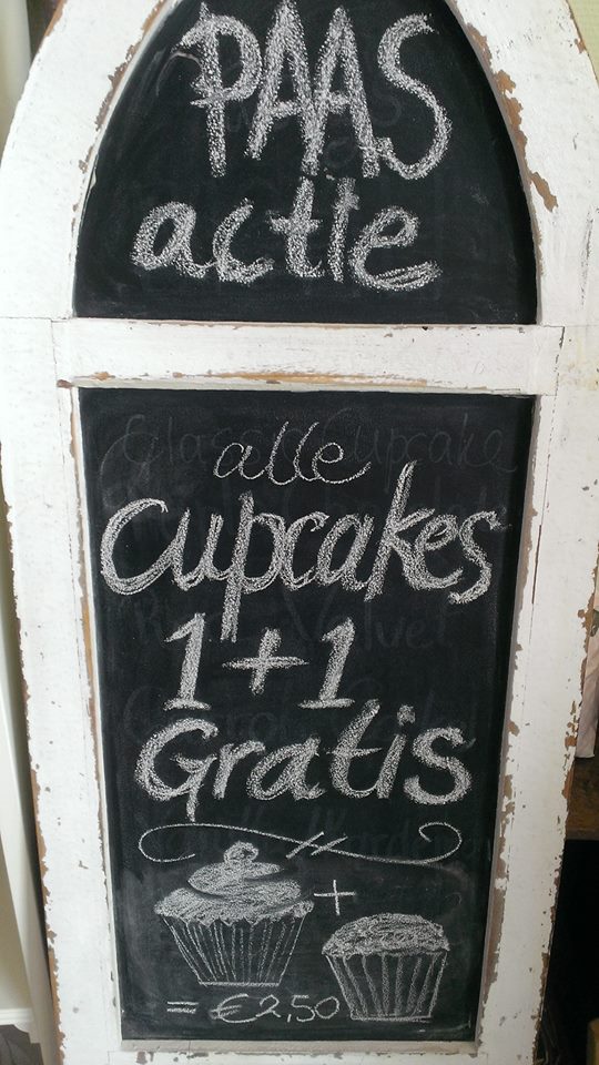 U bent van harte welkom om te komen genieten van onze Paasacties, namelijk álle cupcakes 1+1 gratis en een mini Paastaartje voor 5 euro.