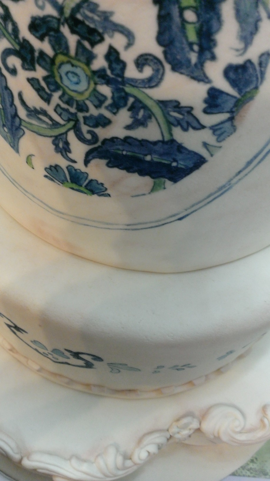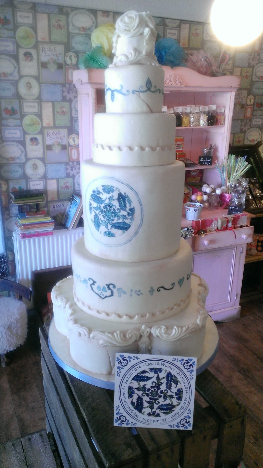 Het ontwerp bleef ongeveer hetzelfde, een paar andere wensen, maar het idee van typisch Hollands Delfts Blauw en een meer oosters ontwerp bleef. En daar keek ik naar uit. Ik hou van schilderen op de taarten!