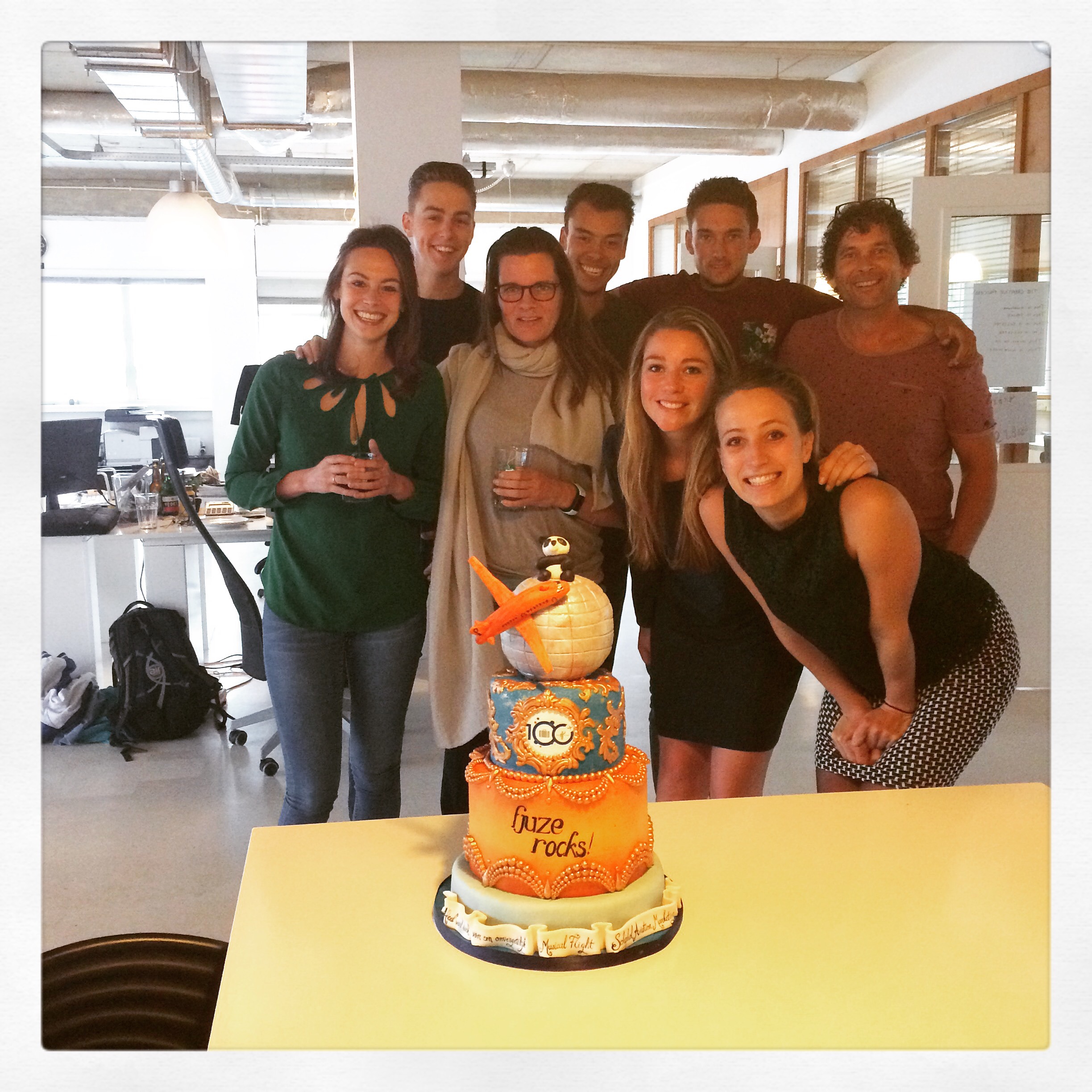 De taart was een verrassing voor het personeel van Fjuze, een evenementenbureau in Amsterdam. Dit keer mocht ik Schiphol zelf dus voorbijrijden en de taart een stukje verderop bezorgen. Wat een ontzettend leuke mensen, zo blij! Schiphol staat er dus weer goed op!