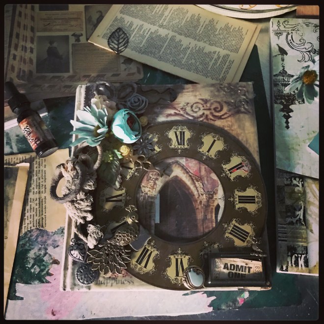 Maar een creatieve geest laat zich natuurlijk niet zomaar lamleggen. En dus is een gedeelte van het ateljeetje op dit moment gevuld met verf, bedels, rommel, scraps en piepschuim bollen in heel veel maten.