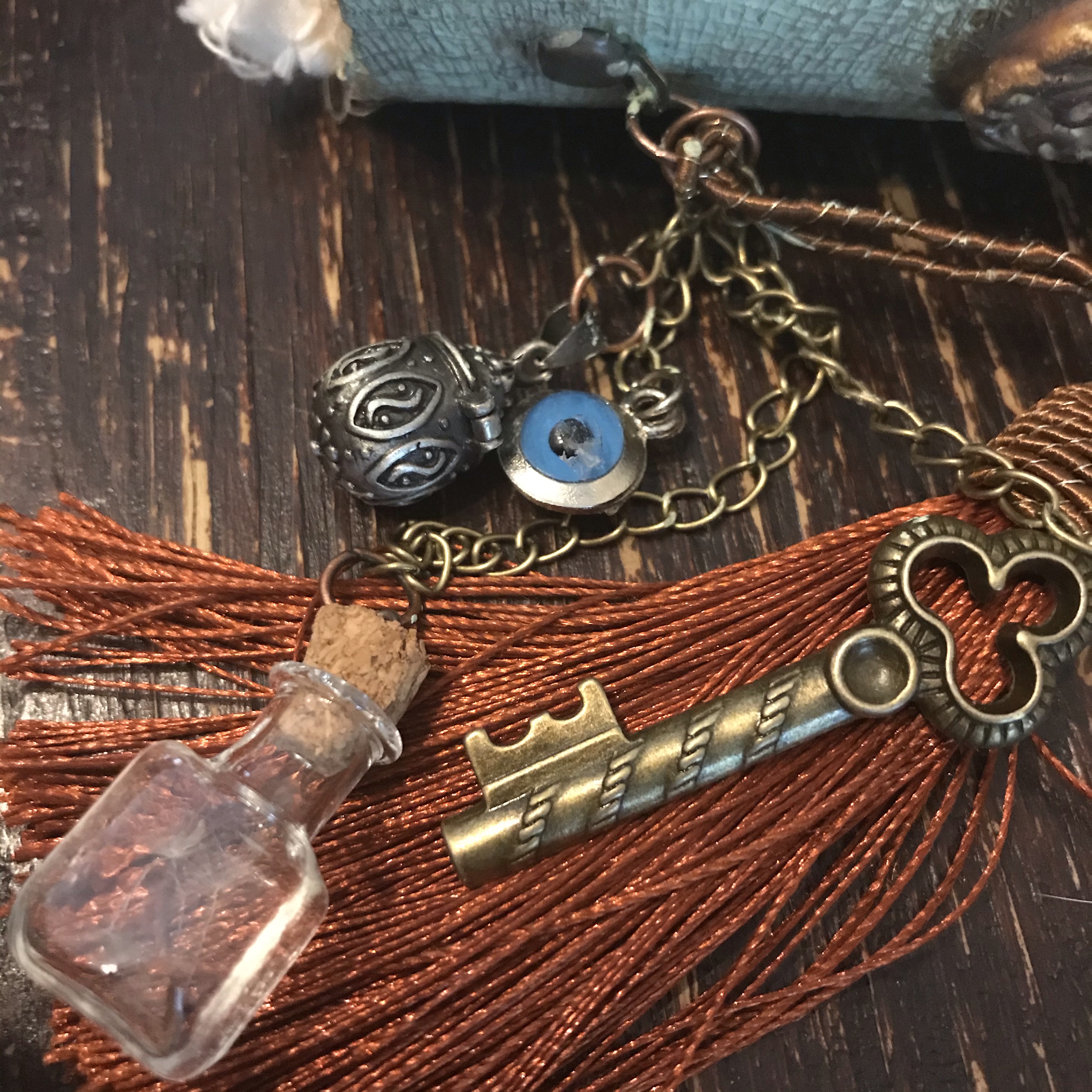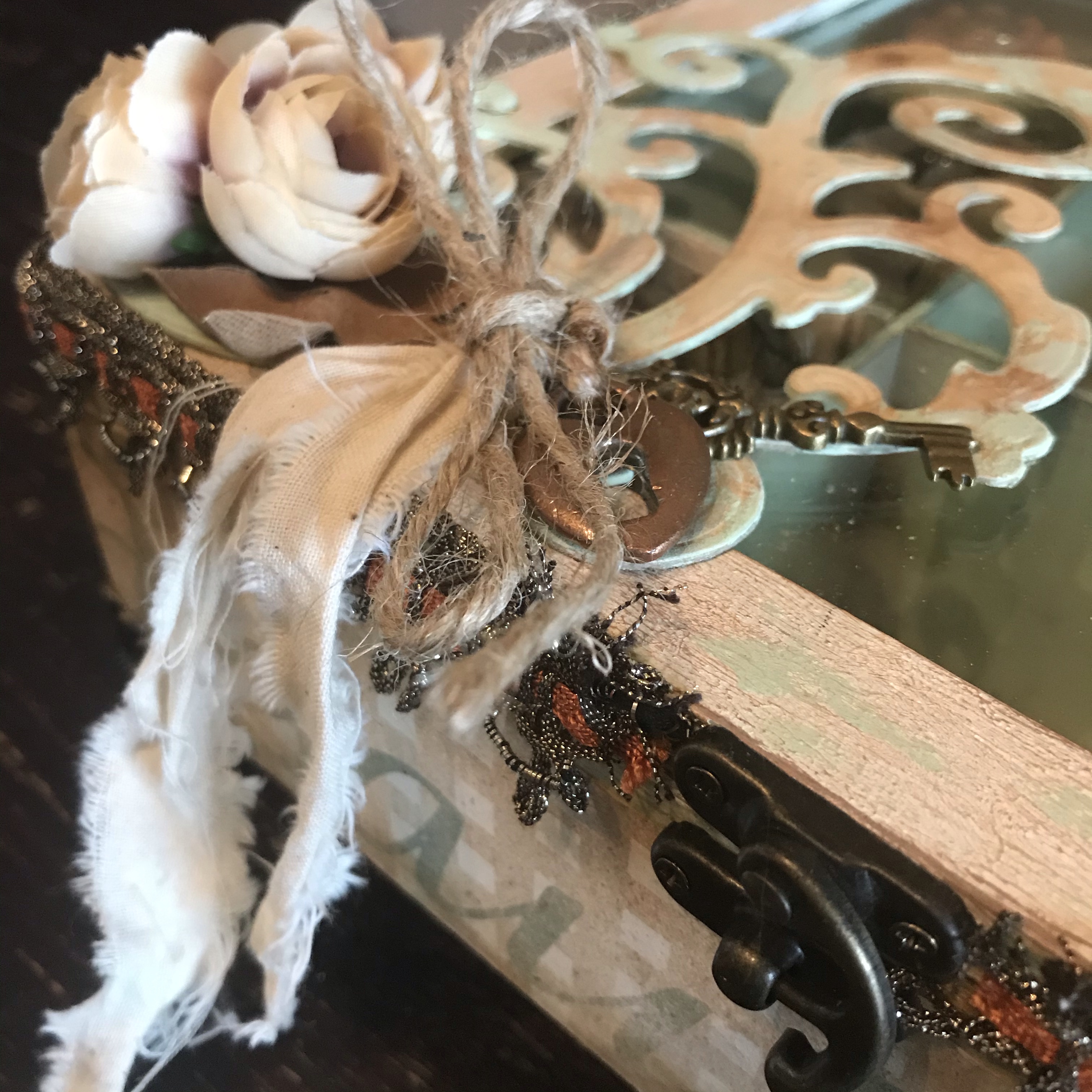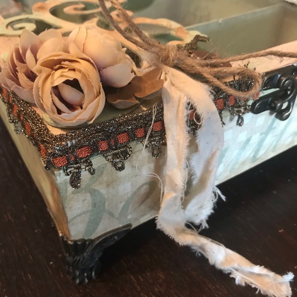 De theedoos ook nog voorzien van een slot én pootjes! Ik had de pootjes eigenlijk al gebruikt onder een piepschuim paasei en ik had geen voorraad meer, dus het paasei is nu pootloos… Maar het maakt deze memorybox natuurlijk wel helemaal af!