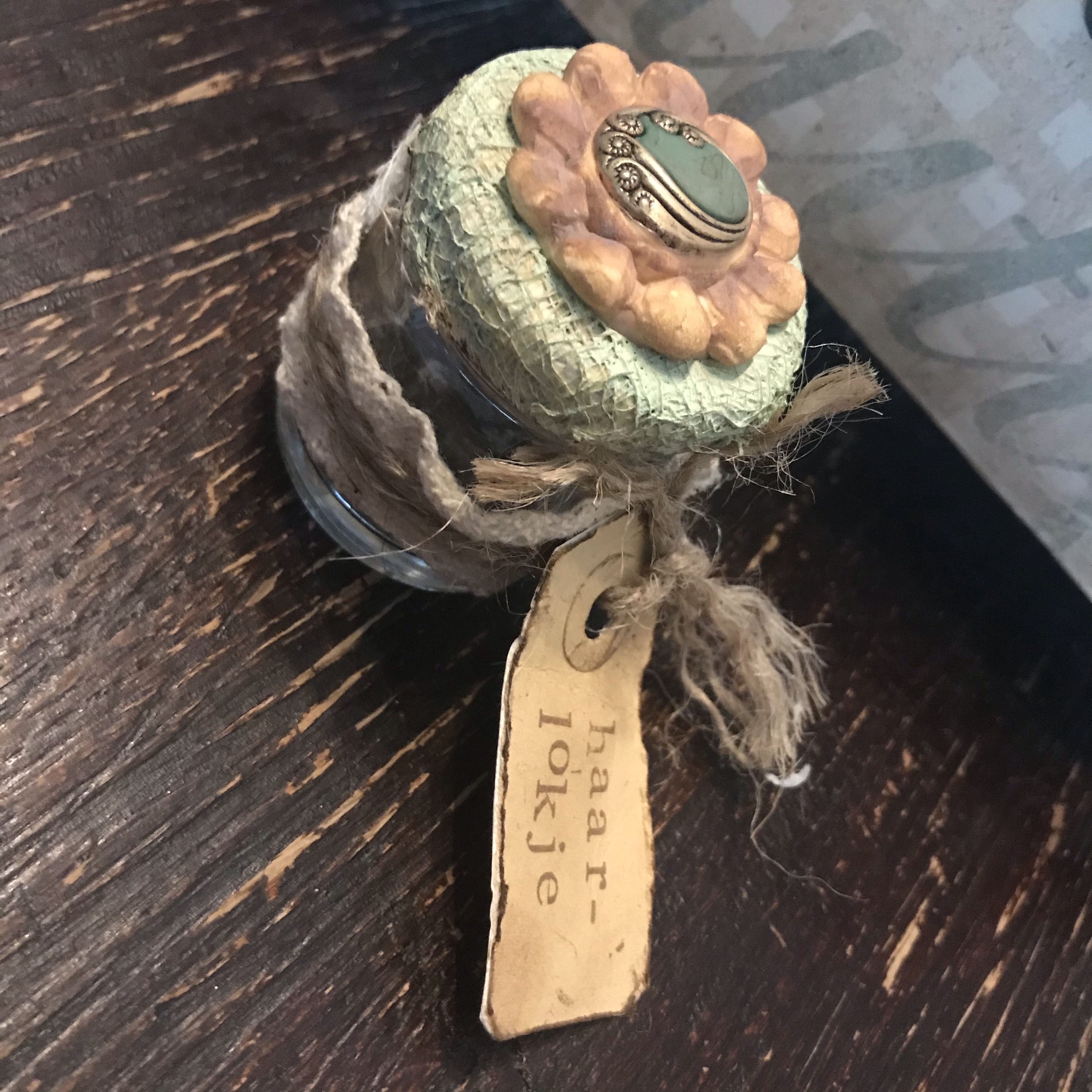 Als laatste ook een potje voor het eerste haarlokje. De kleine is nu nog behoorlijk haarloos dus dat zal nog wel even duren!