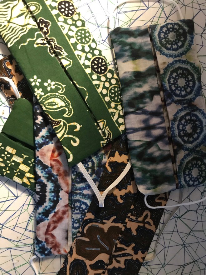 Sja….een atelier hebben, stofjes genoeg en een naaimachine…. dat kan maar 1 ding betekenen…. ook ik ben aan de mondkapjes! In eerste instantie voor onze oudste, die stage loopt op dit moment en met openbaar vervoer dagelijks heen en weer naar Scheveningen gaat. Maar ik krijg er lol in en dus ga ik lekker door…. ik ben de shop aan het vullen, hopelijk dit weekend een heleboel erbij….. hou het in de gaten.