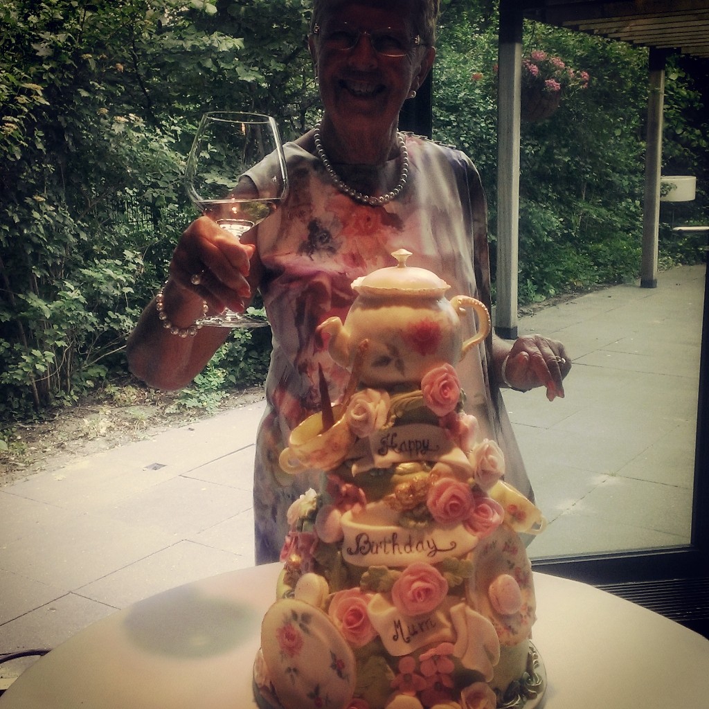 Mooi op schema (om drie uur ’s nachts begonnen met decoreren en ongeveer twaalf uur klaar) de taart ingeladen in de auto en mr TAARTenkUNST thuis opgehaald.