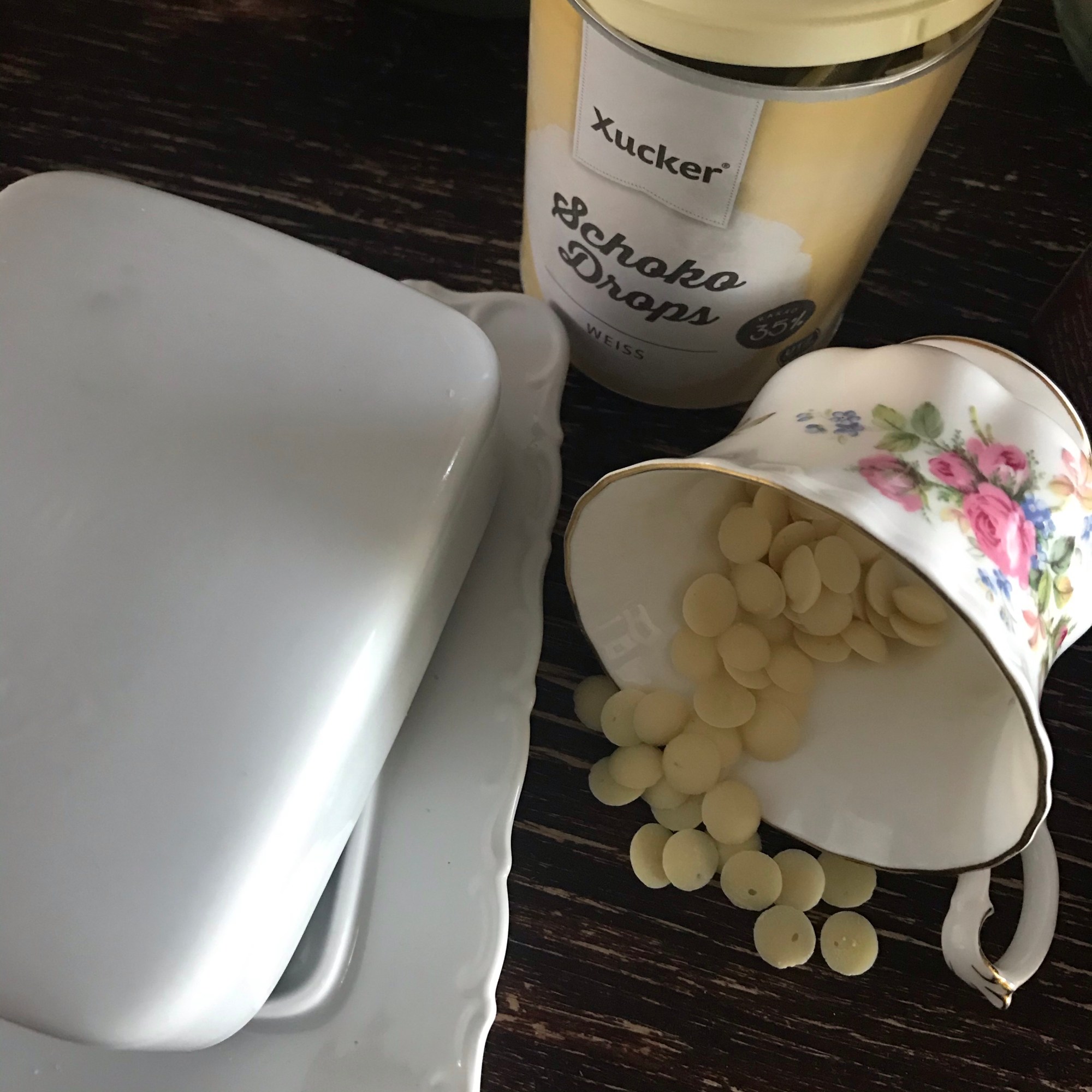 | VOOR DE TOPPING: 150 gr witte chocolade callets (ik gebruik het merk Xucker van Lowcarbcenter) 1 el roomboter Verwarm in een steelpannetje langzaam de witte chocola en roomboter en roer door totdat er een egale massa ontstaat. Laat dit iets afkoelen en verdeel het over de bovenkant van de afgekoelde brownie. |