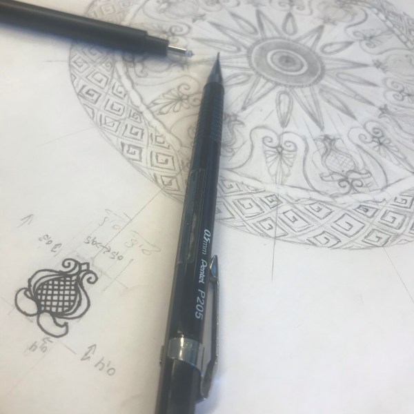 Op Instagram kwam er een leuke reactie op een van de “work in progress” foto’s…. of ik zoiets ook kon maken, maar dan met een Grieks oog in het midden. Maria is een superlieve vrouw die we kennen uit Malona op Rhodos, met liefde heb ik dan ook het ontwerp “vergriekst”. Ik heb er byzantijnse granaatappels in verwerkt, dat is een typisch symbool voor Rhodos, ik heb de “blaadjes” van de levensboom ook voorzien van een grieks modelletje en achter het oog zit de Macedonische ster, het symbool van Alexander de Grote.