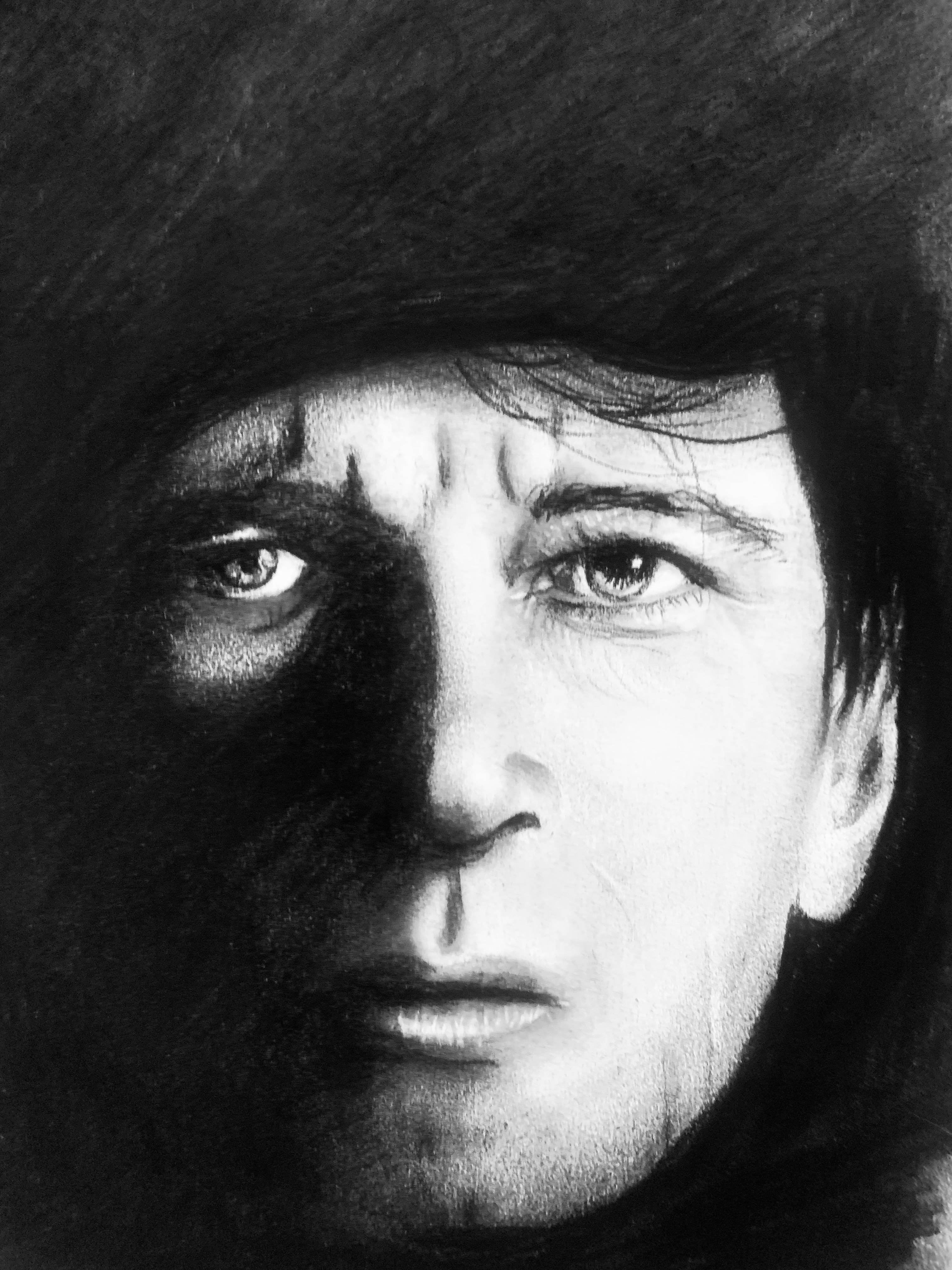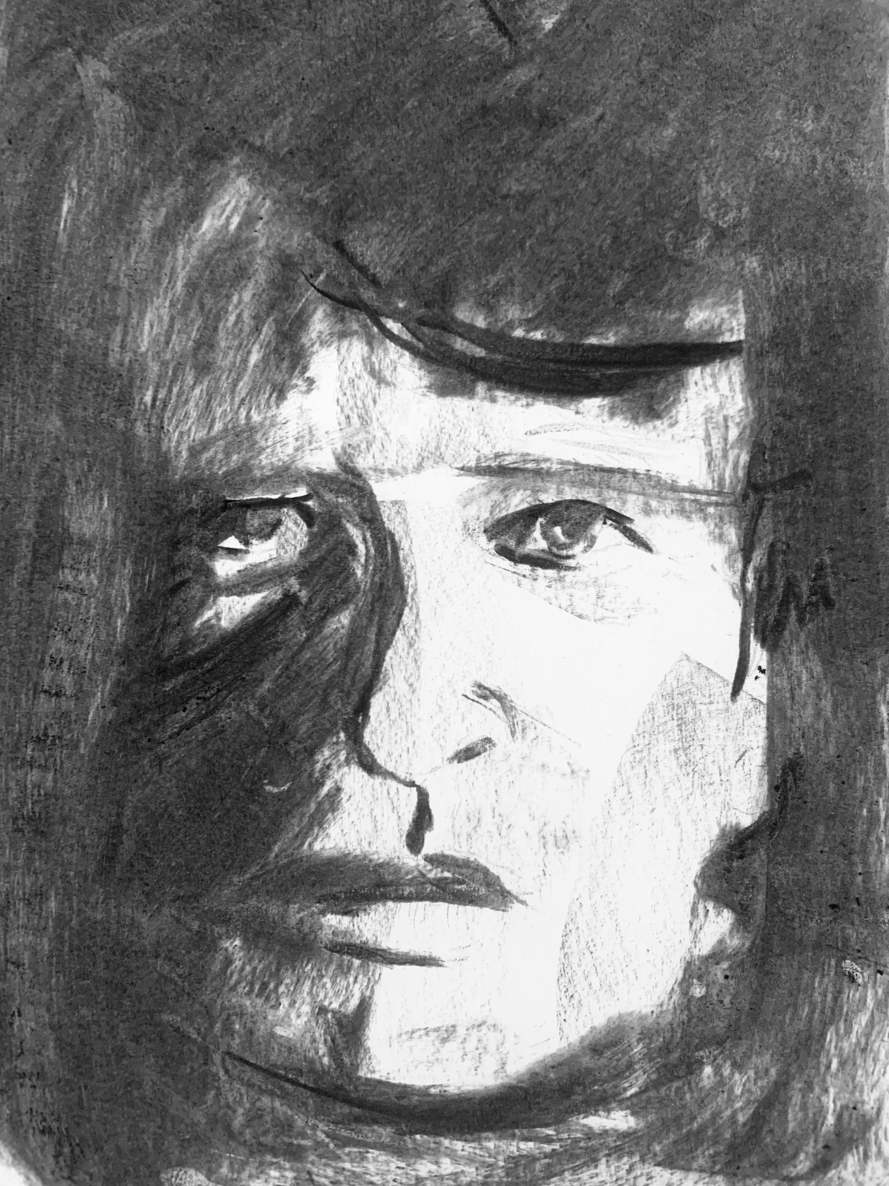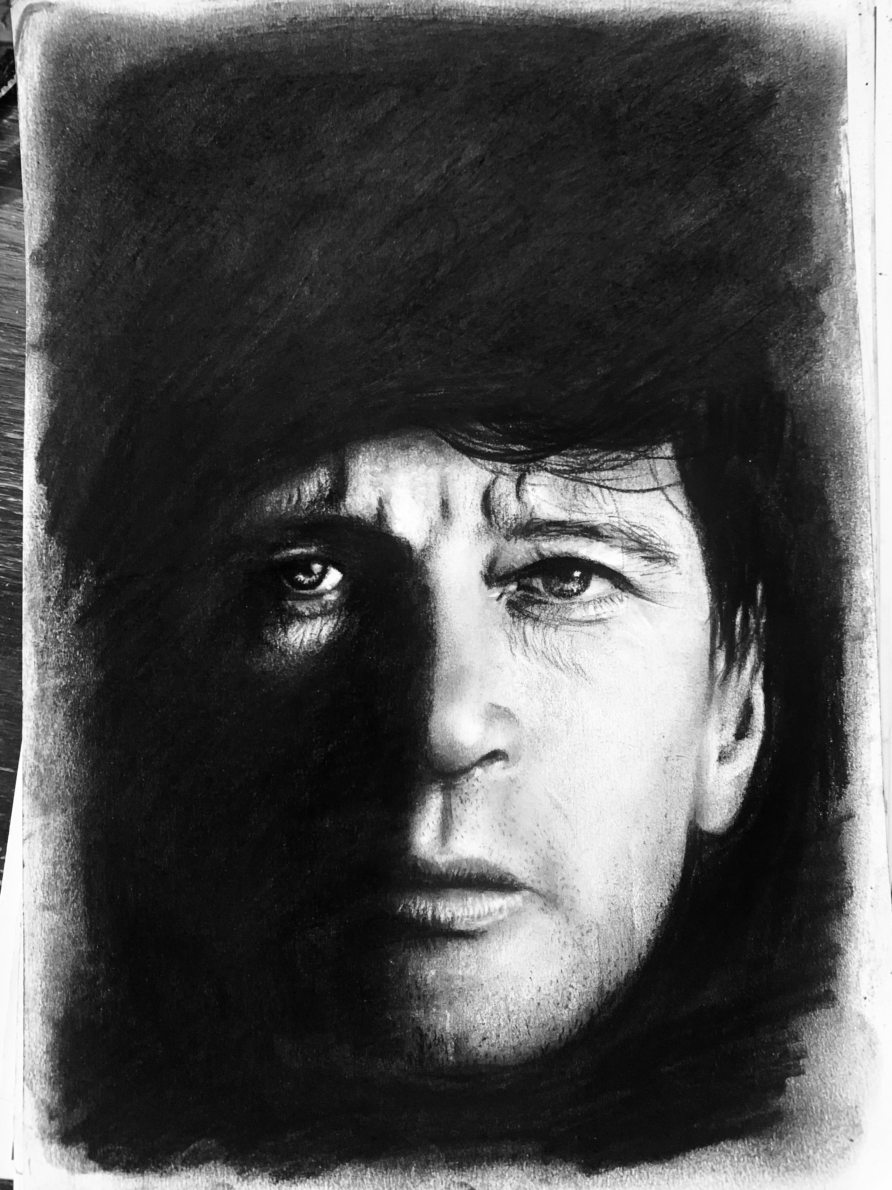 Hieronder zie je het proces van deze tekening, ik heb hem eerst grof opgezet met houtskool, weer net even een andere tactiek dan anders, want meestal zorg ik voor heel precieze lijntjes en ga ik voorzichtig beginnen met schaduwen. Dit was echt meer het wilde werk… maar dat vind ik dan ook wel weer passen bij Herman.