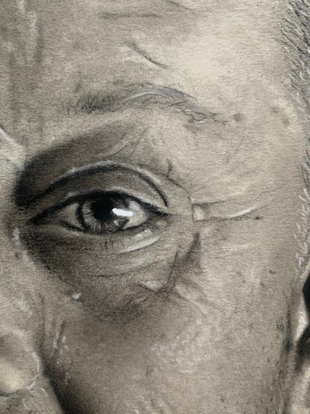 En toen aan de slag met houtskool. Heel veel met de kwast om de schaduwen mooi te krijgen. Maar ook heel veel met kneedgum voor de highlights en oneffenheden. Kortom, weer een flinke klus. Maal twee!