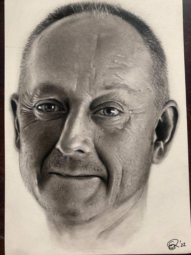 Ik heb bewust tussendoor geen foto’s gestuurd naar deze opdrachtgeefster. Ze vond het al heel moeilijk om foto’s uit te zoeken. Ik heb de dag dat ze de tekeningen zou komen ophalen gevraagd of ze vast een foto wilde maar dat hoefde niet. Dat snap ik, het is allemaal al heftig genoeg.