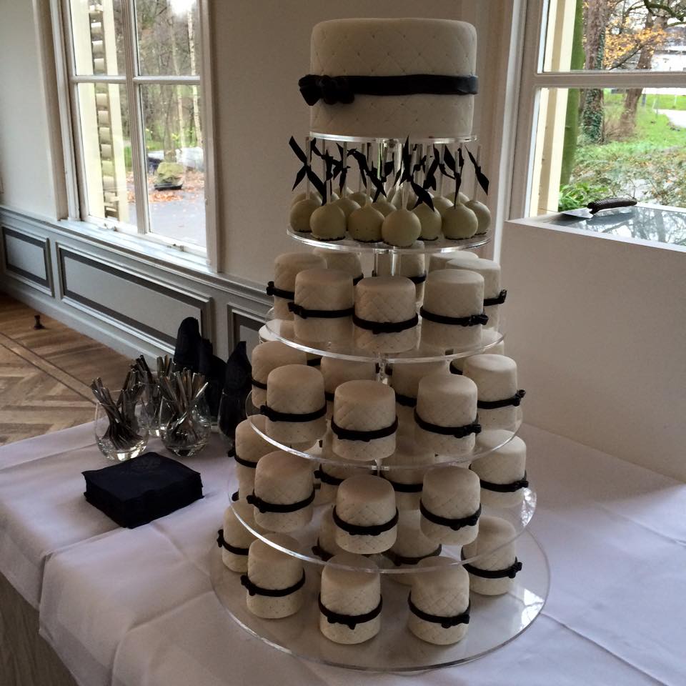 Natuurlijk is een witte bruidstaart met bloemwerk prachtig, maar het kan ook anders. Bijzondere kleuren, of helemaal geen taart maar een complete sweettable. Of een heleboel kleine taartjes, met allemaal verschillende smaken zodat iedereen zelf kan kiezen.