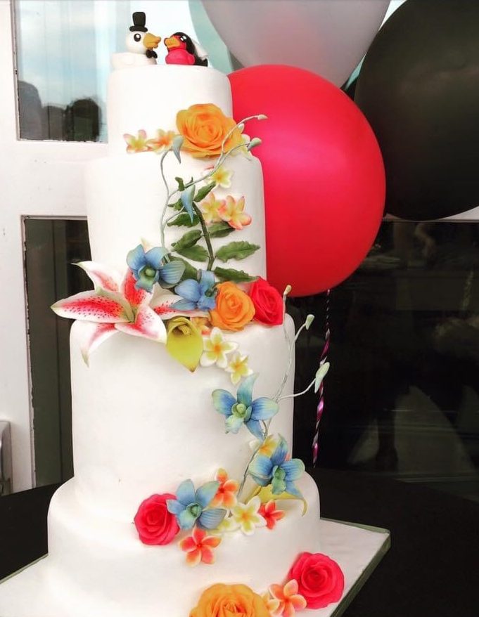 Eerlijk is eerlijk, bruidstaarten waren zó leuk om te maken! Vooral omdat ik zoveel leuke bruidsparen heb mogen ontmoeten die mij de meest waanzinnige opdrachten gaven. Natuurlijk zijn witte bruidstaarten met bloemwerk prachtig…. maar een beetje anders is zoveel gaver! Ik kan eerlijk zeggen dat ik nooit een saaie bruidstaart heb gemaakt!